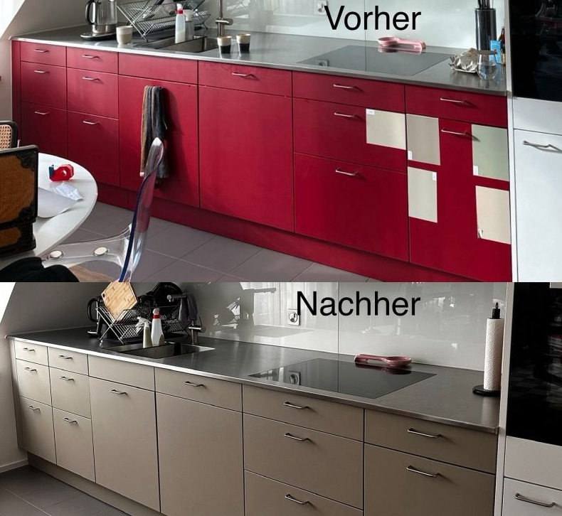– Möbel: Farbliche Umgestaltung von Möbeln wie z.B. Küchen oder Elemente im Empfangsbereich oder Büro.