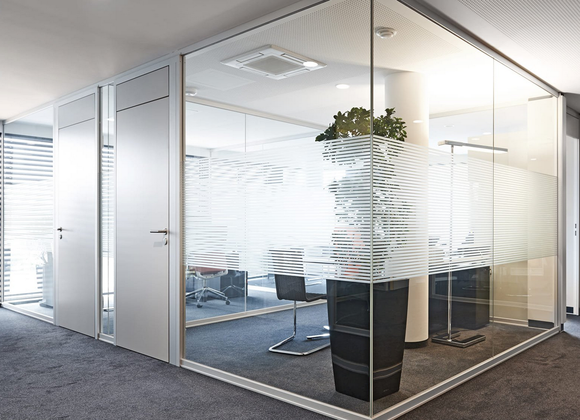 – Büros & Glasflächen: Sichtschutzfolien, Logos, Wegweiser oder dekorative Elemente